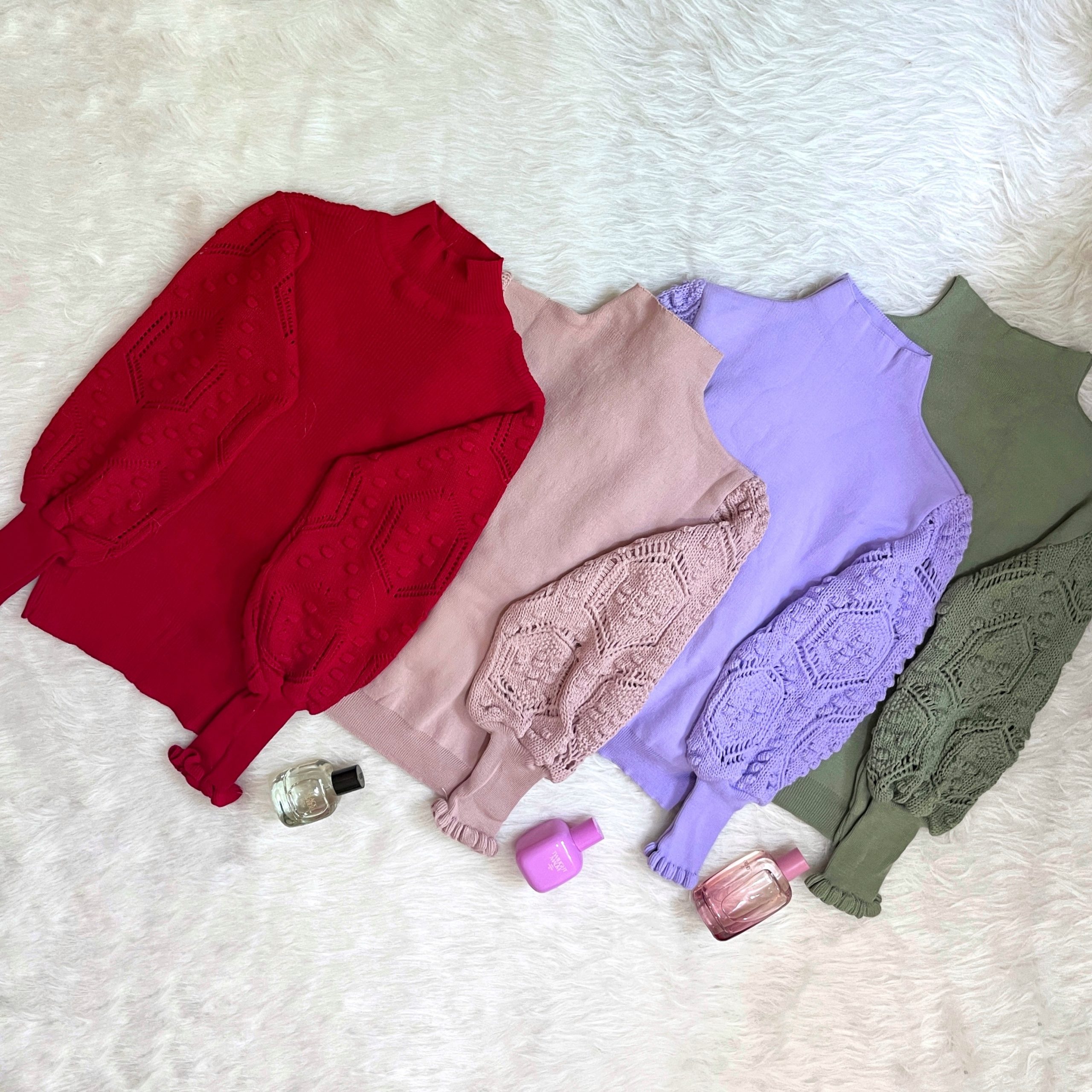 با تنوع رنگی شامل قرمز، سبز، کالباسی، بنفش و مشکی، میتوانید مطابق سلیقه خود انتخاب کنید و ستهای جذابی بسازید. سایز فری این بلوز مناسب اکثر بانوان است و طراحی آزاد آن آزادی حرکت و راحتی را تضمین میکند.