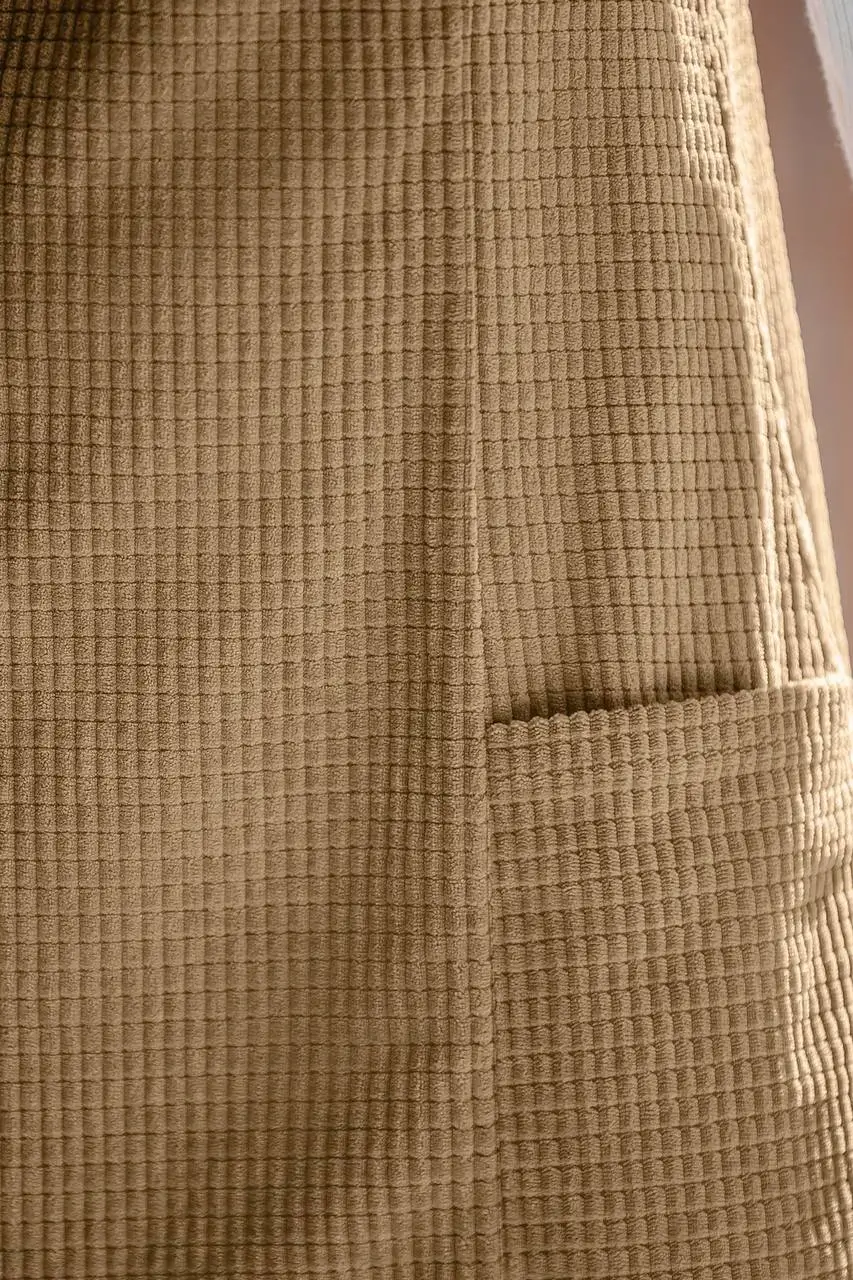 سارافون بافت مخمل کبریتی از برند کاپشی انگلیسی، مدل مینیمالی کلاسیک با حس نوستالژیک و طراحی مدرن است. این لباس کوتاه، با پارچه مخمل کبریتی با بافت غلیظ و لطیف، جلوهای گرم و شیک دارد که برای فصول خنکتر مثل پاییز و اوایل زمستان انتخابی عالی است. بافَت پارچه نه تنها ظاهری با کیفیت و کلاسیک ایجاد میکند، بلکه حس راحتی و استحکام خوبی به لباس میبخشد.