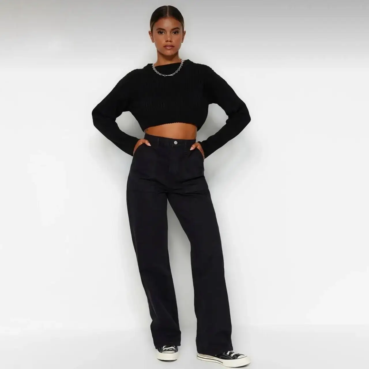 شلوار جین مشکی زنانه میلا، یک wide-leg jeans وارداتی از ترکیه است که با طراحی high-waist و جیبهای جزیی (pocket-detailed)، ظاهری مدرن و flattering برای استایلهای شهری یا casual ایجاد میکند.